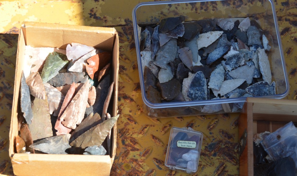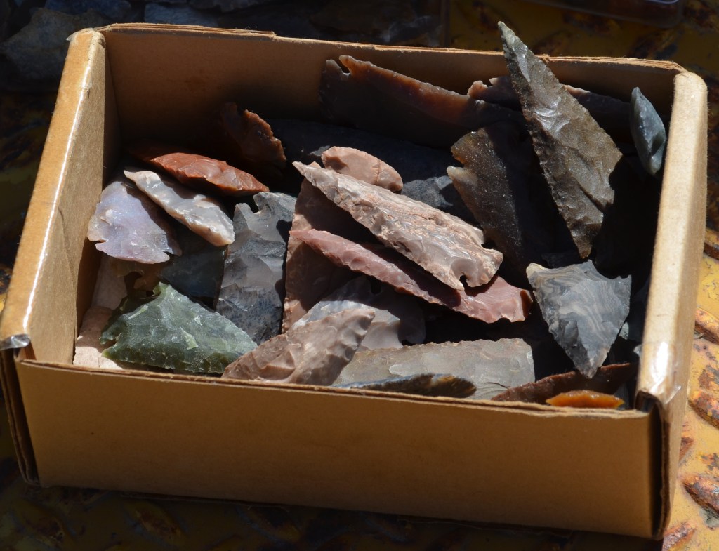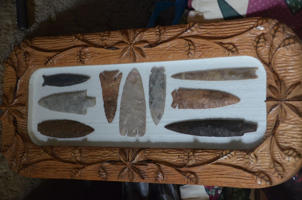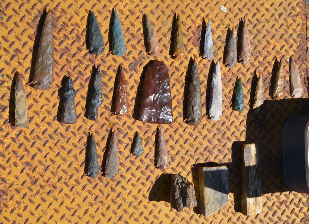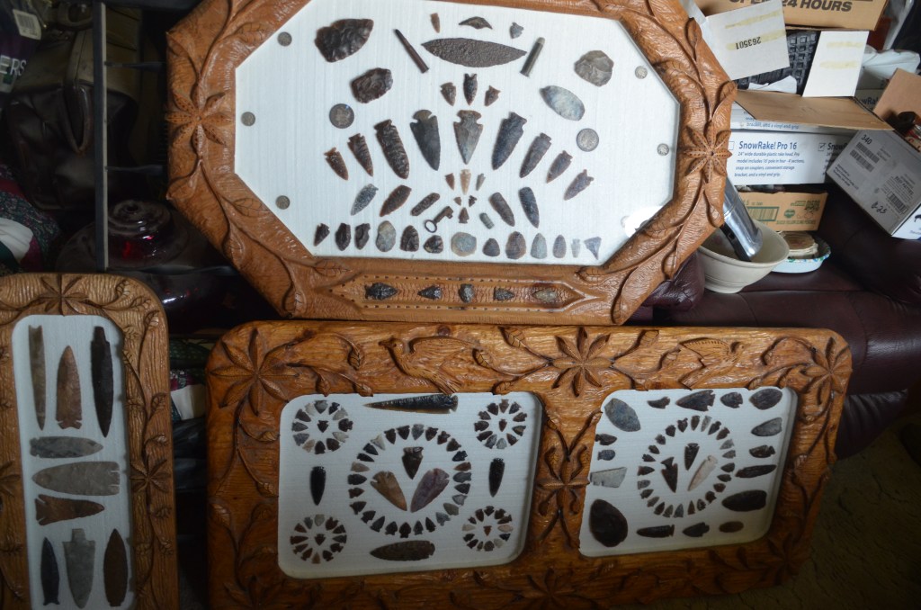 There is also a collection of Native American artifacts that have been collected from private land. A collection that took Darrell many years of searching to put together. There are many arrowheads and stone blades. Along with some pieces of petrified wood, assortment of flint and other interesting pieces.