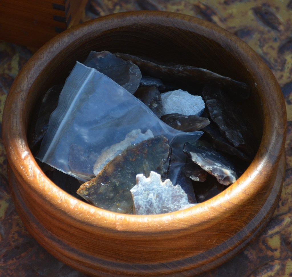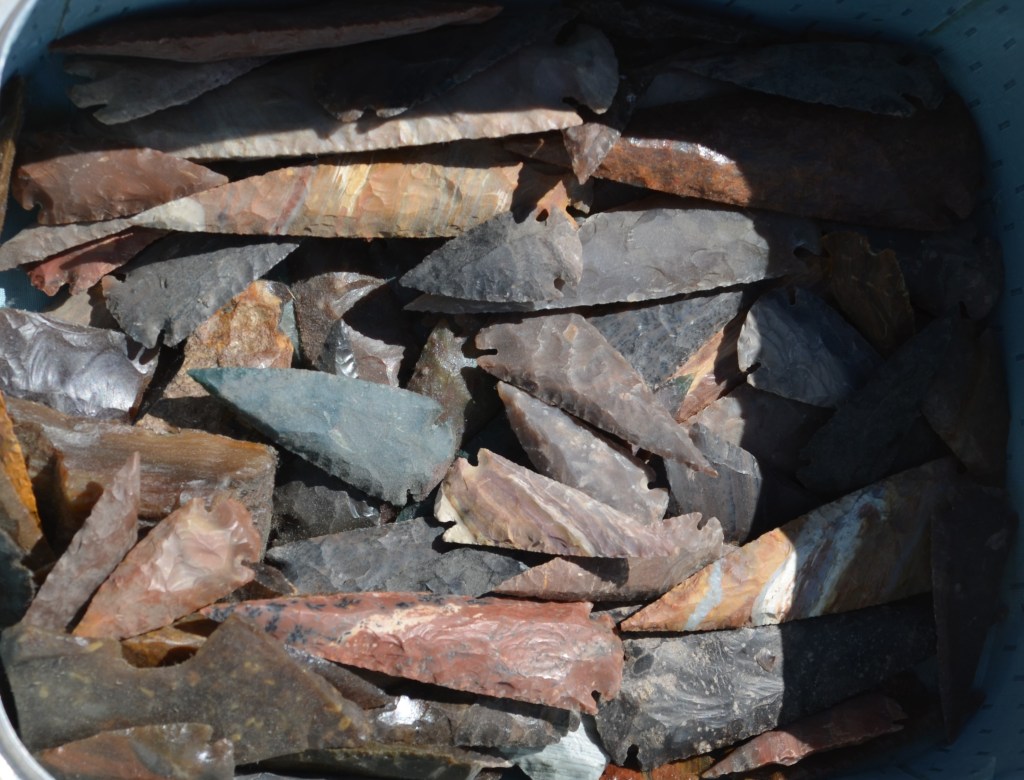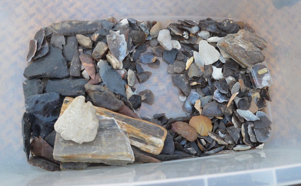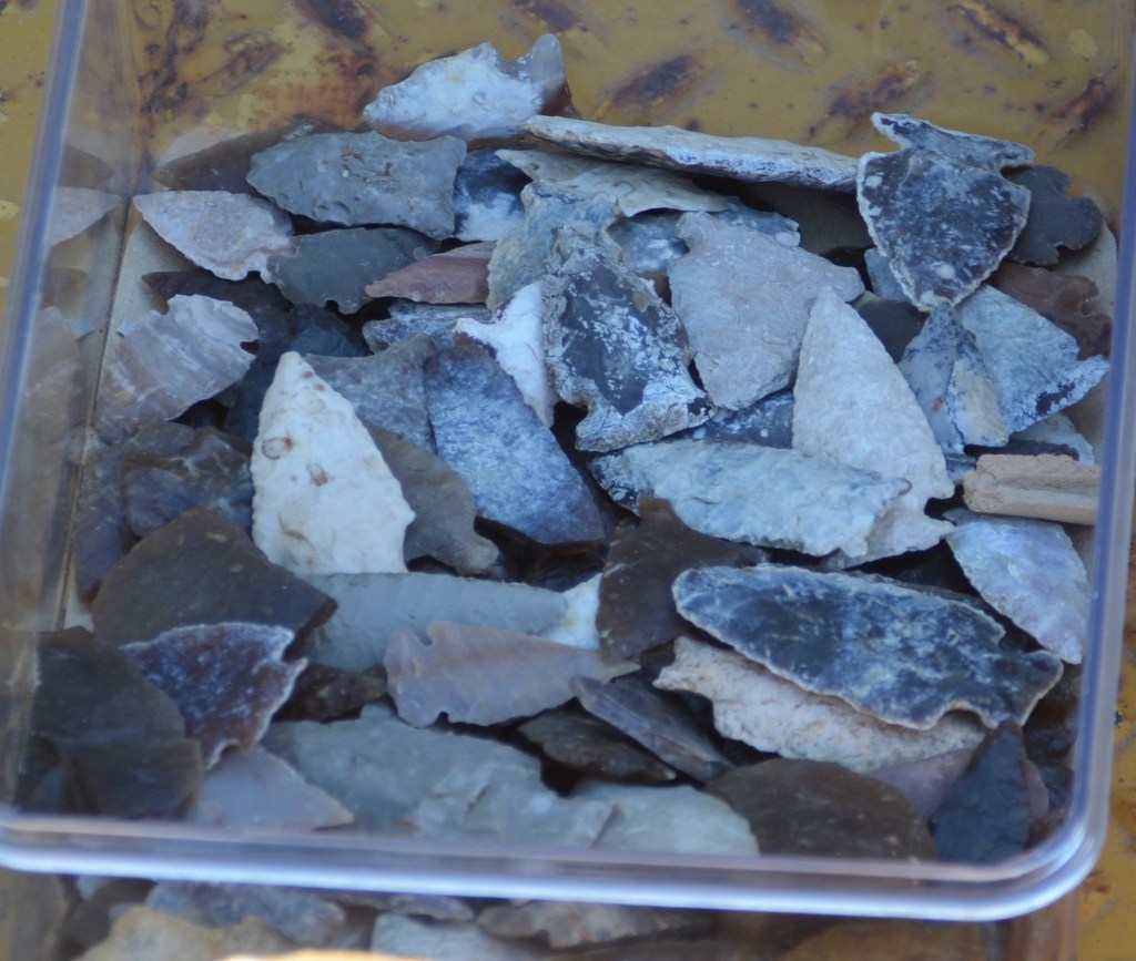 There is also a collection of Native American artifacts that have been collected from private land. A collection that took Darrell many years of searching to put together. There are many arrowheads and stone blades. Along with some pieces of petrified wood, assortment of flint and other interesting pieces.