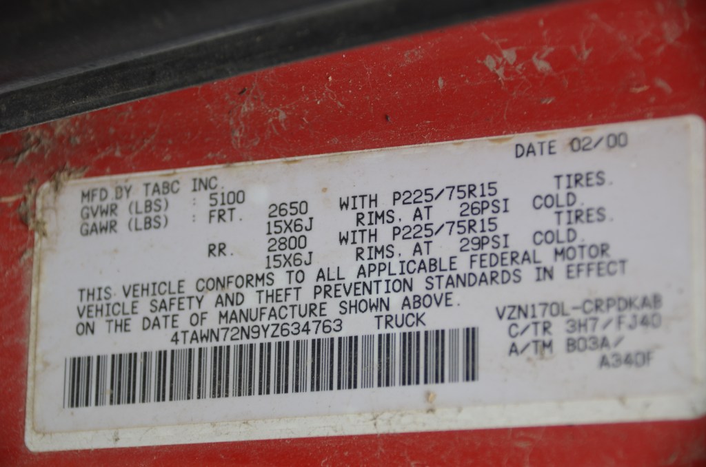 2000 Toyota Tacoma SRS V6 – Currently not running
